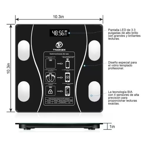 ✅ Medición multifuncional : Peso, IMC, grasa corporal, masa muscular, agua, grasa visceral, densidad ósea y metabolismo basal.